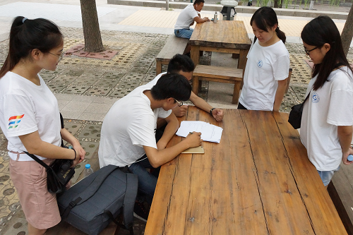 下午,团队发放调查问卷。团队成员分工行动,找寻合适的调查对象。不少人表示选择网约车是因为其方便快捷,现在人们出行都会带着手机,可以用微信、支付宝等方式在线支付,很符合现代人的消费方式。问卷中有一个问题:如果网约车侵害你的权利时你会怎么办?有些人会直接不填写,有些人则会写上“报警”两字。