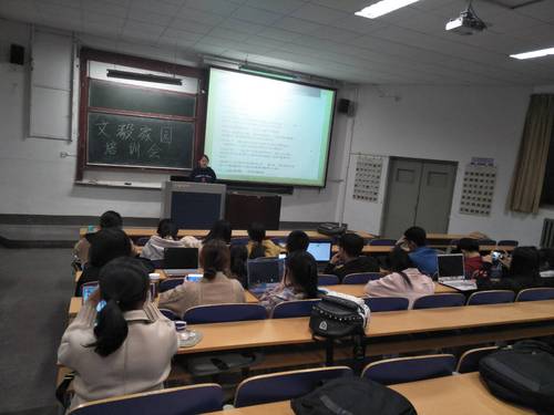 3月22日晚,文毅家园培训会在1号教学楼西一合堂举行。此次培训会由会长孙小杭主讲,参加此次培训会的有各部部长、各部骨干及其它社团人员。
