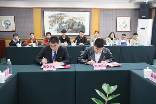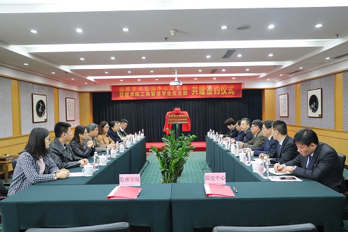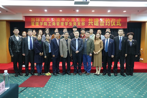接下来,公司工商管理员工党支部张仕杰同志与国际学术交流中心党支部肖学义同志一同签署了共建协议书,双方合作共建工作正式开展。