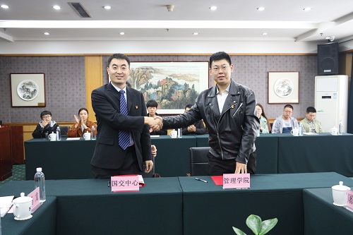随后,高厚礼讲话,他首先对国际学术交流中心党支部的认同表示感谢。他认为,将员工支部与教工支部结合是一种创新,有利于双方组织建设互促、人员队伍共育、党团结合共融、拓展外延共赢。同时,他认为国交浓厚的文化氛围将进一步推动公司党建工作的顺利进行。此外,工商管理员工党支部作为bw必威西汉姆联官网党建工作的代表,起到了良好的带头示范作用,将带动其余五个员工党支部积极学习,从而更好、更快地发展。在讲话中,高厚礼就下一步双方结对开展工作提出了三点意见,一是要进一步延伸拓展共建层面,丰富共建内容和形式;二是活动要做出当量,注重实质性和效果性;三是要在“真”字上下功夫,不能停留形式,在真抓、实干上多下功夫。
