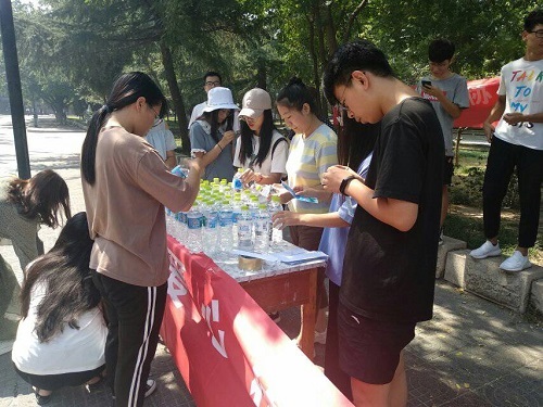 活动伊始,管理论坛的成员将宣传所用的桌子、单页提前准备就绪,并在餐厅门口进行一系列准备工作:粘贴横幅、调试音响。紧接着,管理论坛成员将矿泉水搬到桌子旁边,并等待大一新生的到来。随后,大一新生训练结束,陆陆续续赶往餐厅。与此同时,管理论坛成员在餐厅门口为大一新生发放矿泉水,并向他们派发有关宣传管理论坛的单页,并安排相关人员向他们介绍管理论坛。随着时间一分一秒地流逝,我们的送水活动渐渐接近尾声。