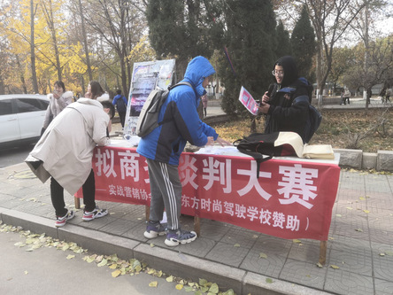 为增加同学们对模拟商务谈判大赛的了解,使同学们积极参与到模拟商务谈判大赛中来,提高同学们对于商业问题的谈判能力,争做五有人才,11月26日上午,实战营销协会组织志愿者于中心花园东侧展开模拟商务谈判大赛宣传活动。
