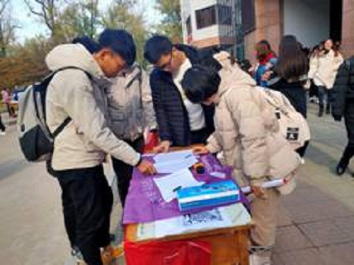 宣传活动前,相关负责人定制宣传横幅,印制宣传单页,王肖肖向宣传人员详细介绍老员工创业管理论坛活动的相关内容。宣传过程中,采用挂横幅和发放单页的方式进行宣传,宣传人员为前来咨询的同学们详细讲解活动时间、活动地点及赛事流程、比赛规则、参赛方式等相关事项,宣传现场气氛热烈。通过宣传人员的详细介绍,有利于同学们对老员工创业管理论坛活动有更深程度的了解,宣传人员还引导同学们加入QQ在线交流群来进一步了解活动,更有不少同学直接扫描二维码报名参赛。