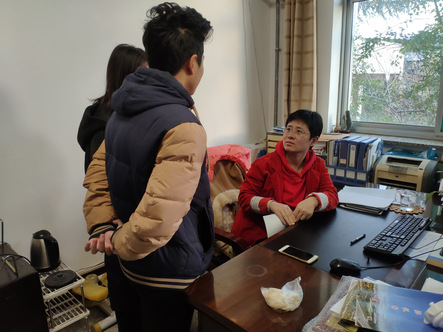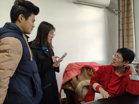 11月28日上午,在东校区四号教学楼204教室,指导老师许敬与麦穗守望者协会成员就看包活动展开讨论,并对看包活动提出建议。