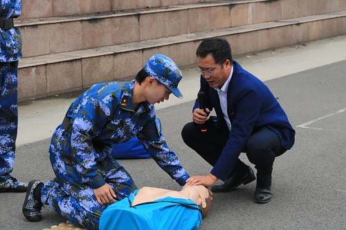 首先进行宿舍楼紧急撤离,所有员工于宿舍楼内等待,听到哨声响起立即有序撤离,全程井然有序。紧接着,刘丛丛将撤离后的员工统一带到操场。尹磊昌就宿舍逃生方法进行细致讲解,纠正员工错误行为,并介绍如何应对逃生中的突发情况。介绍完毕,梁彪向新生讲解心脏复苏及灭火器的相关知识。他以一名员工为例,全方位介绍了心肺复苏的具体位置、正确做法及需要进行心肺复苏的情况。梁彪讲到,进行心肺复苏一定要注意操作程序是否正确,按压姿势是否标准,切记盲目进行操作。随后,他以具体事例向员工讲解心脏复苏的重要性。