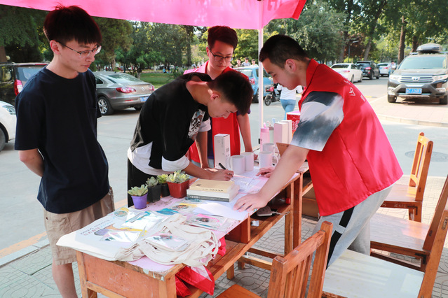 活动期间,线上设置捐赠群,员工积极加群并将资料发送给工作人员,工作人员根据捐赠内容进行分类保存。线下设置捐赠点,员工根据报名表所填信息进行图书捐赠,将捐赠图书送至东校区餐厅南侧捐赠站点,工作人员协助员工及时完成信息登记核对任务。此外,到场捐赠图书的同学可参与抽奖活动领取精美礼品。活动开展过程中,工作人员向员工宣传活动内容与活动意义,维持现场秩序,使得线下募捐活动有序开展。