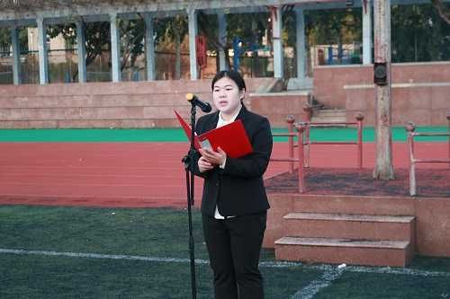 国旗护卫队离场后,员工会执行主席王冉冉作《赓续初心传薪火,奋斗青春献祖国》主题演讲,她带领同学们回顾了新中国建国72年以来的奋斗历程,向广大青年学子发出“厚植爱国情怀,凝聚青春力量”“树立远大志向,不断砥砺奋进 ”“传承初心使命,争做时代新人”的三点倡议并代表员工会全体成员作出承诺:坚持秉承“全心全意为师生服务”的宗旨,为公司公司的发展建设贡献力量。最后,她带领在场员工共同发出铿锵有力的誓言:愿以吾辈青春,捍卫盛世中华!请党放心,强国有我!