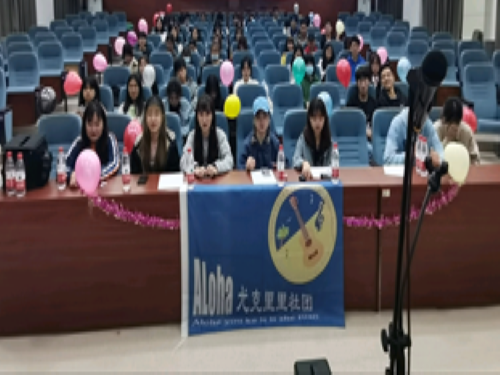 为了响应党中央号召,全党全军全国各族人民要更加紧密地团结在以习近平同志为核心的党中央周围,全面贯彻习近平新时代中国特色社会主义思想,大力弘扬伟大建党精神。Aloha尤克里里社团于2021年11月28日,在一号教学楼一楼西合堂举办“听党歌,很党走”趣味竞赛活动。部分2020级与2021级同学参赛。策划部部长孟露作为此次活动主持人。