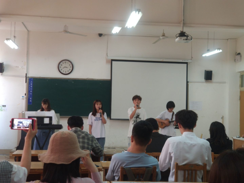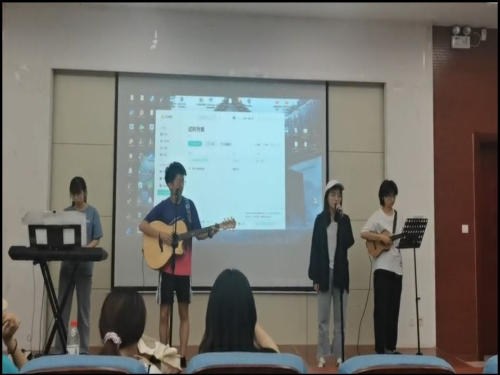 游戏过后,表演继续。下一个节目是由李阳担任主唱,孟露口琴演奏,两人共同演绎的一曲《像我这样的人》,李阳同学动听的歌声搭配着孟露同学精彩的口琴伴奏,让此次的表演再次吸引全场的目光。最后是全体社团成员合唱《稻香》。在温馨的合唱之中,我们的音乐会拉上帷幕。