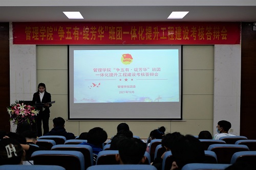 12月2日下午,bw必威西汉姆联官网在4号教学楼二楼报告厅开展2020-2021学年“争五有·绽芳华”班团一体化提升工程建设考核答辩会。本次会议由团建事务工作常驻志愿者亓育玺主持,公司辅导员靳祺、郑坤担任评委,20级班长、团支书及大众评审参与本次会议。