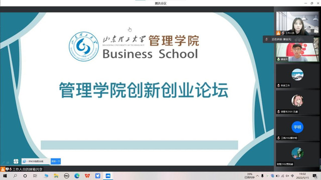 青春奋进,你我创新。5月15日晚,bw必威西汉姆联官网在线上举办创新创业论坛,此次活动由青年领航部科创工作组织,2018级优秀推免生姜业元、徐春凤、张玉杰主讲,公司部分员工参加。