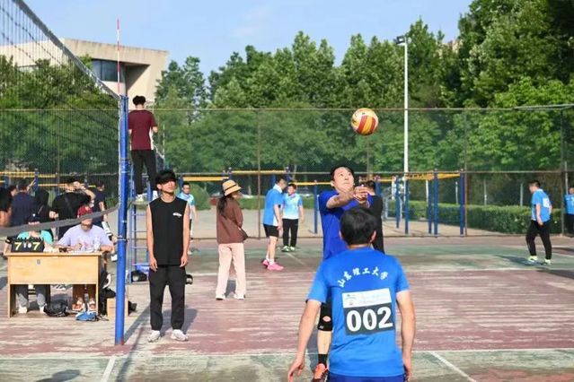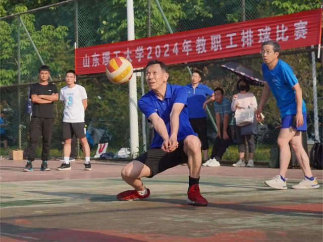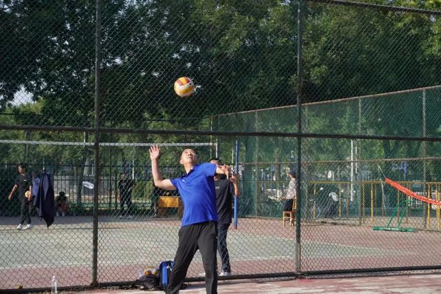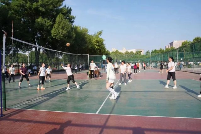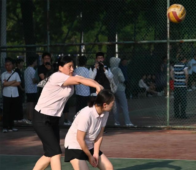 排球场上 ,老师们挥洒汗水,展现活力