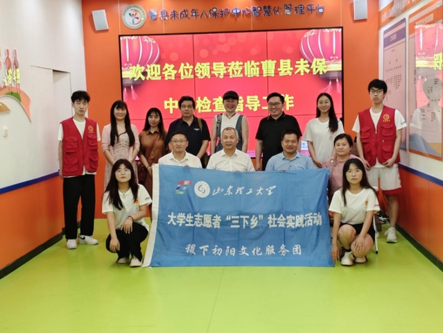 仪式开始前,领导们对正在此地进行暑期社会实践的稷下初阳文化服务团进行了亲切的慰问与鼓励。随后,在曹县未成年人保护中心主任薛洁的带领下,一行人共同参观了未保中心的各个功能室,深入了解了未保中心的基本情况以及老员工社会实践开展情况和志愿者服务具体内容。