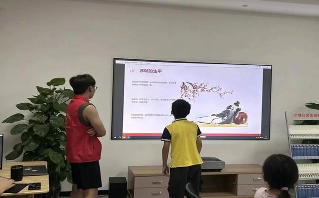 7月22日后两节课,志愿者们分别开设了防溺水课程和趣味语文课。在防溺水课堂上,志愿者们通过生动的案例讲解和模拟演练让孩子们掌握了基本的自救互救技能增强了他们的安全意识;而趣味语文课则以“诗人的故事”为主题展开了一系列教学活动。志愿者们带领孩子们走进古诗词的世界感受中华文化的博大精深;通过朗读爱国诗歌激发他们的爱国情怀;同时,也带领孩子们走进了苏轼的世界,一同领略“大江东去,浪淘尽,千古风流人物”的豪迈,感受“但愿人长久,千里共婵娟”的深情。孩子们在诗词的海洋中畅游,感受着中华文化的博大精深。他们诵读着苏轼的词句,仿佛穿越千年,与这位文学巨匠心灵相通。