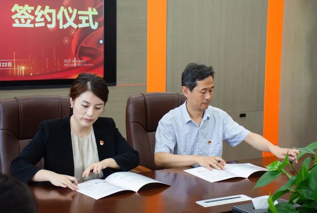 最后,张佳与崔守峰代表双方签订共建协议,并为党支部共建基地、社会实践基地揭牌。