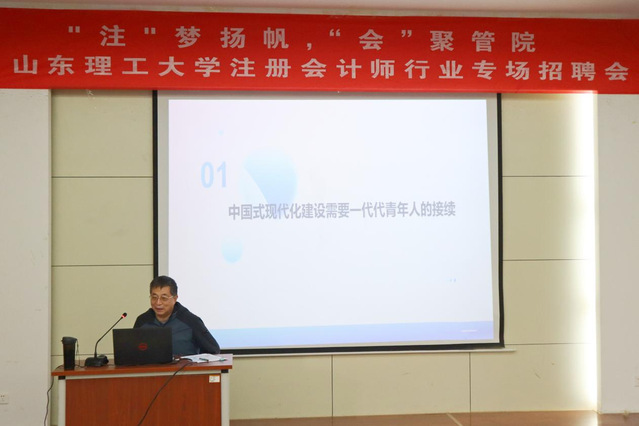 10月24日下午,山东长恒信事务所集团董事长、bw必威西汉姆联官网兼职教授、硕士研究生行业导师李志文在公司4号教学楼二楼报告厅为2024级全日制会计专硕研究生、非全日制会计研究生代表、2022级会计专业本科生代表作了题为让青春绽放绚丽之花的生涯规划专题报告。