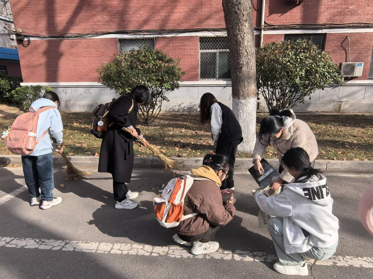 志愿者们走进新华街社区,清理路面垃圾、宣传垃圾分类知识,用双手为居民打造整洁环境,拉近青年学子与社区居民的距离,方便后续活动的开展。
