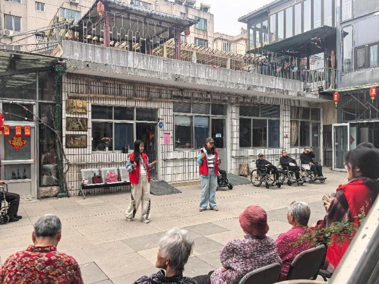 在金乔养老院,志愿者们为老人修剪指甲、整理房间,还献上红色歌曲和趣味游戏。老人们的笑容,是最温暖的“成绩单”。